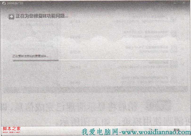 步骤4:进入“正在为您修复IE功能问题”界面,显示重新注册IE组件进度,如下图所示。